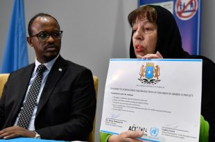 مقديشو (صــوهــا) – أكد وزير الدفاع في الحكومة الفيدرالية الصومالية حسن علي محمد، على إلتزام الحكومة بحماية حقوق الطفل وإعطائه الحقوق والحريات العامة التي يكفلها الدستور في الصومال. ووقع وزير الدفاع الصومالي اتقاقية خارطة طريق توضح بالتفصيل الإجراءات العملية لمنع الانتهاكات المرتكبة ضد الأطفال، بحضور الممثلة الخاصة للأمين العام للأمم …