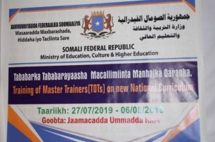 مقديشو(صــوهـا) – افتتحت بمقديشو أمس السبت دورة تدريبية لعدد من معلمي مدارس محافظة بنادر برعاية وزارة التربية والتعليم العالي للحكومة الفيدرالية الصومالية. وقال وكيل الوزارة للمناهج محمد حسن مختار إن الهدف من الدورة هو تغيير نمط التعليم وتحسين جودته لتكون المخرجات أفضل وأرقى . من جانبه أوضح وزير التربية والتعليم …