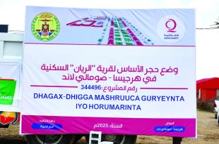 هرجيسا — وضعت “قطر الخيرية”، بالتعاون مع الجهات الرسمية المعنية بالإسكان والشؤون الإنسانية، حجر الأساس لمشروع “قرية الريان النموذجية” في مخيم “محمد موجب” جنوب مدينة هرجيسا، وذلك في إطار الجهود الرامية لتعزيز التنمية المجتمعية وتوفير بيئات سكنية مستقرة للأسر النازحة. وأفادت تقارير نشرتها صحيفة الشرق القطرية بأن المشروع يشتمل على تشييد …