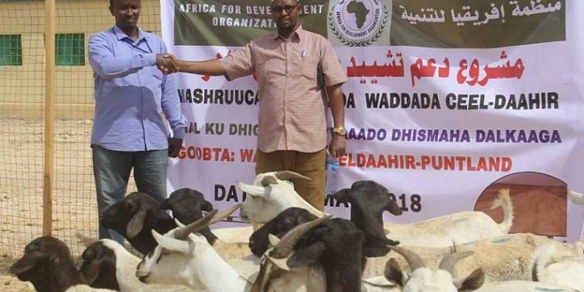 بوصاصو(صــوهـا) – سلّمت منظمة إفريقيا للتنمية ستة عشر غنما للجنة تشيد طريق عيل طاهر – عير جابو في محافظة سناغ، وذلك تشجيعا على تنفيذ المشروع الذي شارف وجهه الأول على الانتهاء.