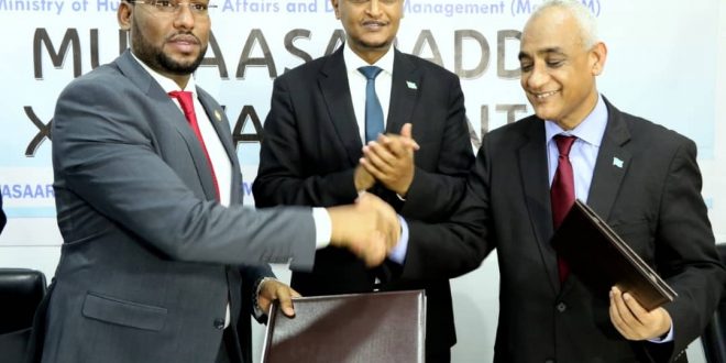جاء ذلك خلال مشاركته في حفل تسلّم الوزير الجديد للشؤون الإنسانية وإدارة الكوارث للحكومة الفيدرالية حمزة سعيد حمزة، ونائبه عبدالرشيد محمود حسن اللذين تم تعيينهما  في 24 من الشهر المنصرم، منصبهما في مقر الوزارة بمقديشو.