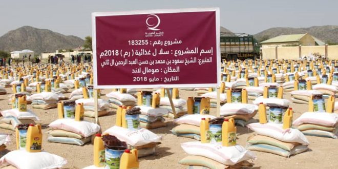 هرجيسا(صــوهـا) – وزعت قطر الخيرية السلال الغذائية على 500 أسرة من العائلات المنكوبة بإعصار ساغار الذي ضرب سواحل محافظات شمال الصومال فور وقوع الكارثة لتكون بذلك أول منظمة إنسانية تستجيب لنداء استغاثة أطلقته الجهات المحلية فيما تستعد لتوزيع المزيد من السلال الغذائية الأخرى قريبا.