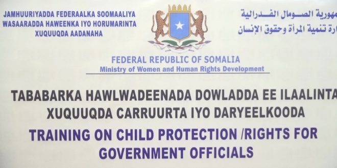 وتعد هذه الدورة التي تستمرعلى مدى يومين جزءًا من خطة وزارة تنمية المرأة وحقوق الإنسان لتطوير وحماية حقوق الأطفال الصوماليين.