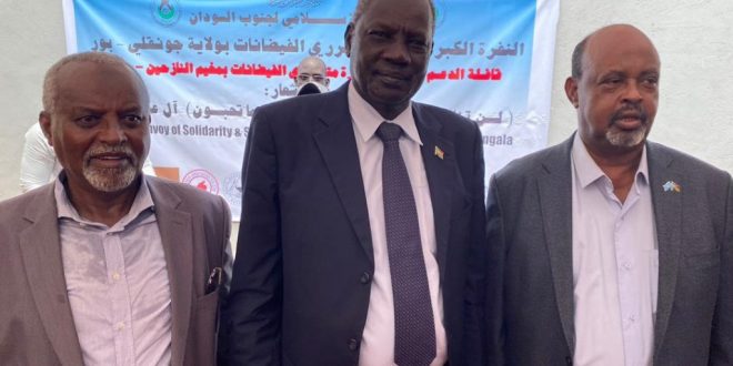 جوبا — قدمت سفارة جمهورية الصومال الفيدرالية في جنوب السودان بالتعاون مع الجالية الصومالية أكثر من 25 طنا من المساعدات الغذائية للمتضررين من الفيضانات بولاية جونقلى.