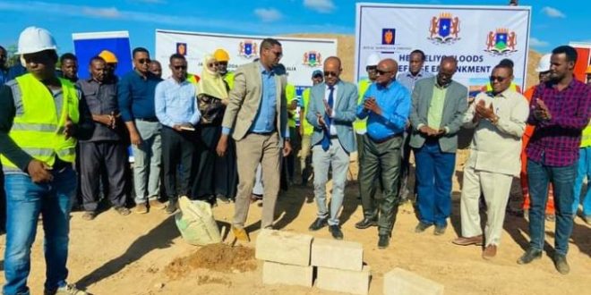 بلدوين — وضع مسؤولون بوزارة التخطيط والتعاون الدولي في الحكومة الفيدرالية الصومالية وممثلو وزارة التخطيط و المياه والطاقة بولاية هيرشبيلي الإقليمية وإدارة محافظة هيران، حجر الأساس لمشروع بناء سد الحماية من مخاطر الفيضانات المتكررة في مدينة بلدين.