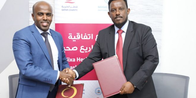 من جهة أخرى وقع كل من السيد عبد الفتاح آدم معلم، مدير مكتب قطر الخيرية في الصومال، والدكتور عبد الولي عبد الله جامع، وزير الصحة ورعاية المجتمع في ولاية جلمدغ، اتفاقية شراكة استراتيجية تقوم قطر الخيرية بموجبها بإنشاء وتجهيز أربعة مراكز صحية في الولاية.