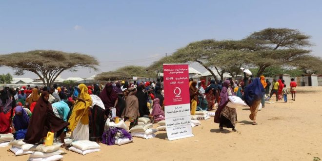 قطر الخيرية توزع سلالا غذائية على الأسر النازحة في مقديشو