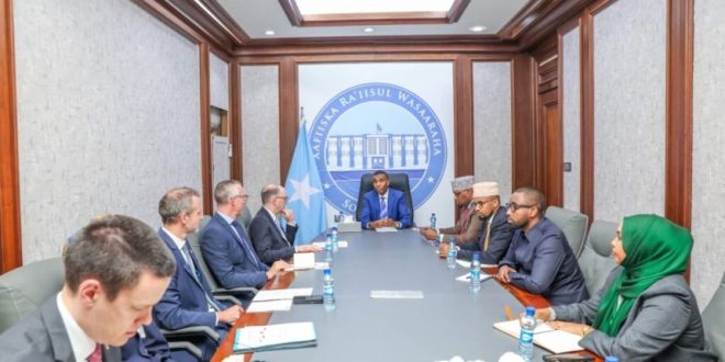 مقديشو — في سياق الحراك الدبلوماسي المكثف الذي تقوده مقديشو لتعزيز الشراكات الدولية وتخفيف وطأة الأزمات الراهنة، استقبل دولة حمزة عبدي بري، رئيس الوزراء الصومالي، بمكتبه أمس الاثنين، وفداً ألمانياً رفيع المستوى برئاسة معالي نيلز آنين، وزير الدولة للتعاون الاقتصادي والتنمية، في لقاءٍ عكس عمق الالتزام المشترك بمواجهة التحديات الوجودية التي تواجهها المنطقة.