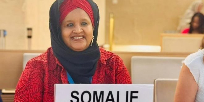 جنيف — أكدت سعادة خضرة محمد دؤالي، سفيرة ومندوبة جمهورية الصومال الفيدرالية الدائمة لدى الأمم المتحدة في جنيف، التزام بلادها الراسخ بالمضي قدماً في تعزيز ملف حقوق الإنسان وتوثيق التعاون مع الشركاء الدوليين، وذلك في كلمة ألقتها أمام مجلس حقوق الإنسان التابع للأمم المتحدة، وفق ما نقلته وكالة الأنباء الوطنية الصومالية (صـونا).