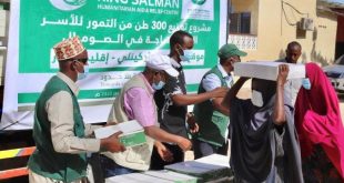 مقديشـو — وزع مركز الملك سلمان للإغاثة والأعمال الإنسانية اليوم الأربعاء، 54 طنًا من التمور للأيتام وذوي الاحتياجات الخاصة والمحتاجين بمديرية كل من ورتانبدا وطركينلي وذاجر وجزيرة بمحافظة بنادر في مقديشو، استفاد منها 18.000 فرد. وقدم مدير المشاريع بالبعثة الإقليمية لمنظمة التعاون الإسلامي في الصومال الدكتور أحمد فارح موسى الشكر للمملكة …