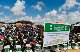 مقديشو — دشن مركز الملك سلمان للإغاثة والأعمال الإنسانية أمس المرحلة الثالثة من مشروع التدخلات في مجال الأمن الغذائي في محافظة بنادر بالعاصمة الصومالية مقديشو، لتأمين 4.620 طنا من السلال الغذائية تزن السلة الواحد 70 كيلو غراماً، يستفيد منها 396.000 فرد من المتضررين من الجفاف في معظم الأقاليم الصومالية، بحضور سفير …