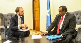 مقديشــو — اجتمع رئيس ولاية هيرشبيلي الإقليمية، محمد عبدي واري، يوم السبت، في مدينة مقديشو، مع نائب السفير الإيطالي لدى البلاد، السيد تابيو مسيمو. وبحث الجانبان خلال الاجتماع قضايا كثيرة أبرزها سبل مواجهة الفيضانات الناجمة عن ارتفاع منسوب مياه نهر شبيلي الذي يجتاح في الغالب مدينة بلدين حاضرة محاضرة هيران …