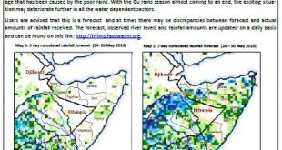 مقديشو (صــوهـا) – قال بيان صادر عن وزارة الإعلام الفيدرالية أن الحكومة الفيدرالية الصومالية تحذر من احتمالية حدوث الفيضانات بسبب تغير المناخ وترقب أعاصير وأمطار غزيرة على الرغم من انخفاض مستوى المياه في بعض المناطق. وأضاف البيان أن الحكومة الفيدرالية وضعت فرق الطوارئ في حالة التأهب القصوى من أجل الاستجابة …