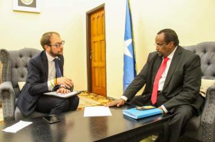 مقديشــو — اجتمع رئيس ولاية هيرشبيلي الإقليمية، محمد عبدي واري، يوم السبت، في مدينة مقديشو، مع نائب السفير الإيطالي لدى البلاد، السيد تابيو مسيمو. وبحث الجانبان خلال الاجتماع قضايا كثيرة أبرزها سبل مواجهة الفيضانات الناجمة عن ارتفاع منسوب مياه نهر شبيلي الذي يجتاح في الغالب مدينة بلدين حاضرة محاضرة هيران …