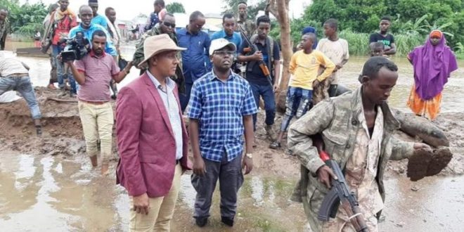 Ibrahim Adan Ali, the governor of Lower Shebelle region and his entourage reached out to help restore water in some areas speaking to the media he said, they had managed to close down four places where the river had broken first but pointed out that people need emergency help.