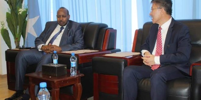 MOGADISHU — The State Minister of Foreign Affairs and International Cooperation, H.E. Abdulkadir Ahmed-Khair Abdi, received on Sunday in Mogadishu, the Ambassador of the People’s Republic of China to the Federal Republic of Somalia, H.E. Qin Jian, and discussed with him the bilateral relations between the two countries and developments in containing and combating the deadly Coronavirus.