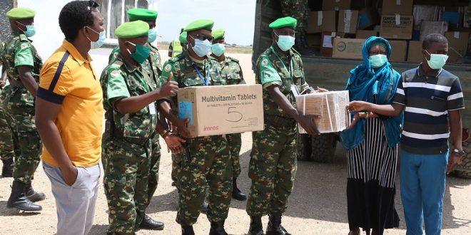 JOWHAR — Burundian soldiers serving under the African Union Mission in Somalia (AMISOM) on Saturday donated medical supplies to HirShabelle state, to help improve access to medical care by local communities and mitigate hardships brought about by the COVID-19 pandemic.