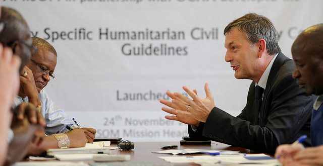Supported by the United Kingdom-Mission Support Team (UK-MST) in collaboration with the AMISOM Force Headquarters (FHQs) and the United Nation Office for the Coordination of Humanitarian Affairs (UN-OCHA), the two-day training in Mogadishu was tailored to improve humanitarian assistance, coordination and cooperation between all players involved in responding to humanitarian emergencies in Somalia.