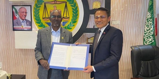 Chargé d’affaires of Taiwan’s representative office in Somaliland Wu Chen-chi and Somaliland Minister of Health Hassan Mohamed Ali Gafadhi signed an agreement on Taiwan’s vaccine donation on Monday (Dec. 27).
