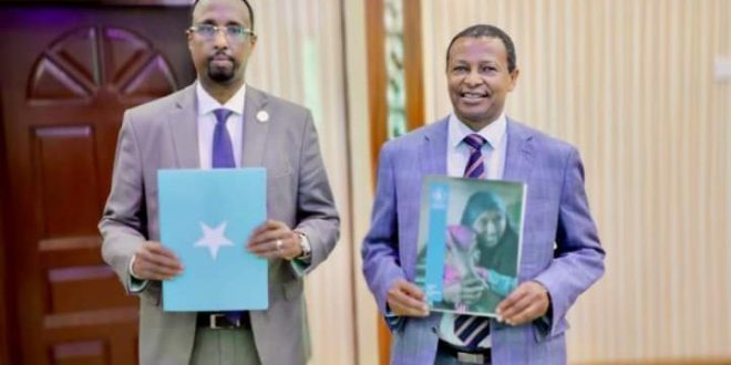 MOGADISHU — The Minister of Labor and Social Affairs, Abdiwahab Ugas Hussein Khalif, received in his office WFP Representative in Somalia, Elkhidir Daluum, and discussed in depth how to strengthen the ministry’s partnership with WFP.