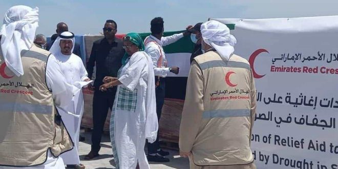 The aid is expected to be distributed to needy families as the town hosts many people fled from their homes due to the ongoing devastating drought.