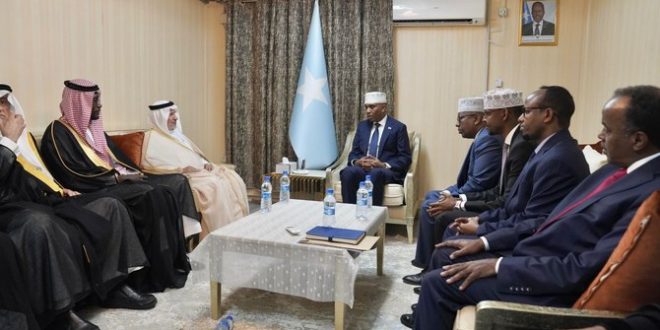 MOGADISHU — Somali Prime Minister Hamza Abdi Barre met today in Mogadishu with Advisor at the Royal Court and Supervisor General of the King Salman Humanitarian Aid and Relief Center (KSrelief) Dr. Abdullah Al Rabeeah to review aspects of cooperation related to humanitarian and relief affairs and means to enhance them.