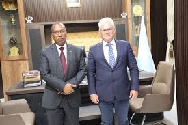MOGADISHU — The Minister of Public Works, Reconstruction, and Housing of the Federal Government of Somalia, Dr. Elmi Mahmoud Nur, held a high-level meeting at his office with the Head of the United Nations Development Programme (UNDP) in Somalia, Mr. Lionel Lourense.
