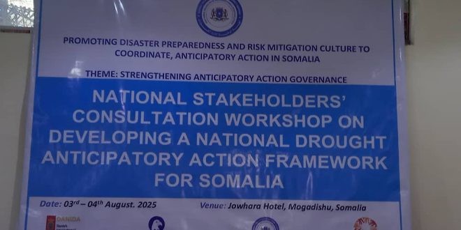 MOGADISHU — In a strategic move toward shifting disaster management from reactive responses to preventive action, the Somali Disaster Management Agency (SODMA), in partnership with CARE International in Somalia, hosted a two-day national consultative workshop on August 3–4, 2025, in Mogadishu. The event was part of the “Anticipatory Action and Climate Resilience along Transhumance Corridors” (AART) project.