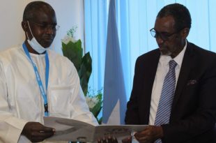 MOGADISHU — The Director General of Protocol at the Ministry of Foreign Affairs and International Cooperation, Adv. Hersi Haji Olosow, received today in his office at the Ministry the credentials of the representative of the United Nations High Commissioner for Refugees (UNHCR) in Somalia, Mr. Magatte Guisse. During the meeting, …