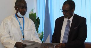 MOGADISHU — The Director General of Protocol at the Ministry of Foreign Affairs and International Cooperation, Adv. Hersi Haji Olosow, received today in his office at the Ministry the credentials of the representative of the United Nations High Commissioner for Refugees (UNHCR) in Somalia, Mr. Magatte Guisse. During the meeting, …